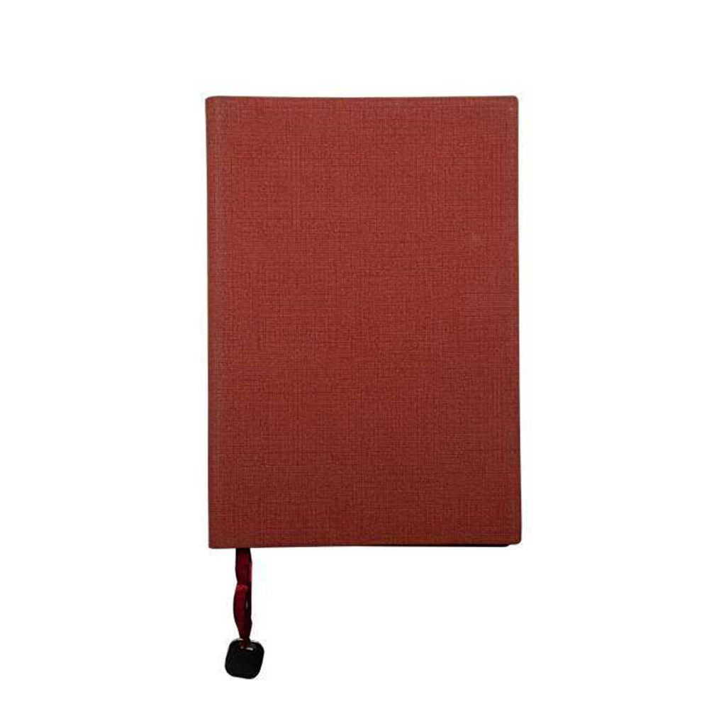 The Archaic A5 Notebook is a refined and practical choice for professionals, featuring a sophisticated tan fabric-textured leatherette cover and a sleek matte finish. With 192 lined sheets and a thoughtful date and day tracker on every page, this notebook is designed to enhance your organization and efficiency. It also includes personal info pages and a unique metal coin on the ribbon bookmark for added branding opportunities.