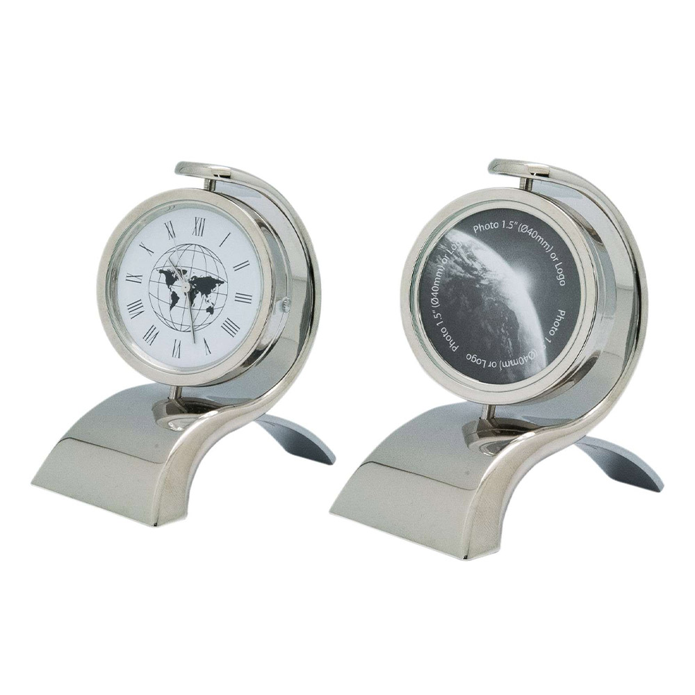 The Shiny Chrome Base Rotating Clock is a stunning blend of elegance and functionality. Featuring a sleek chrome base, this timepiece adds a modern touch to any desk or office environment. The clock rotates smoothly, offering an interactive and dynamic design that draws attention. Its polished chrome finish enhances the overall aesthetic, making it a perfect addition to both professional and personal spaces.