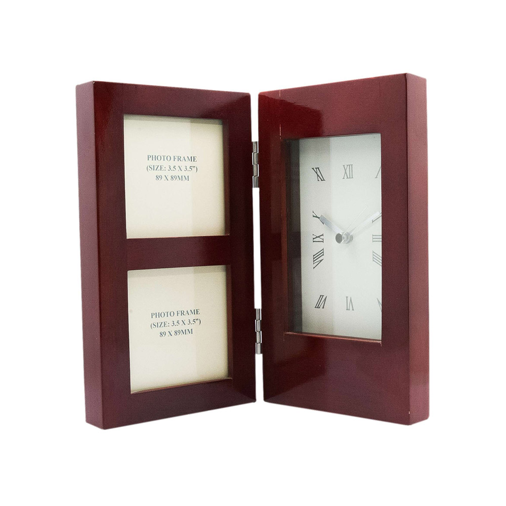 Wooden Desk Clock with Two Photo Frames 1